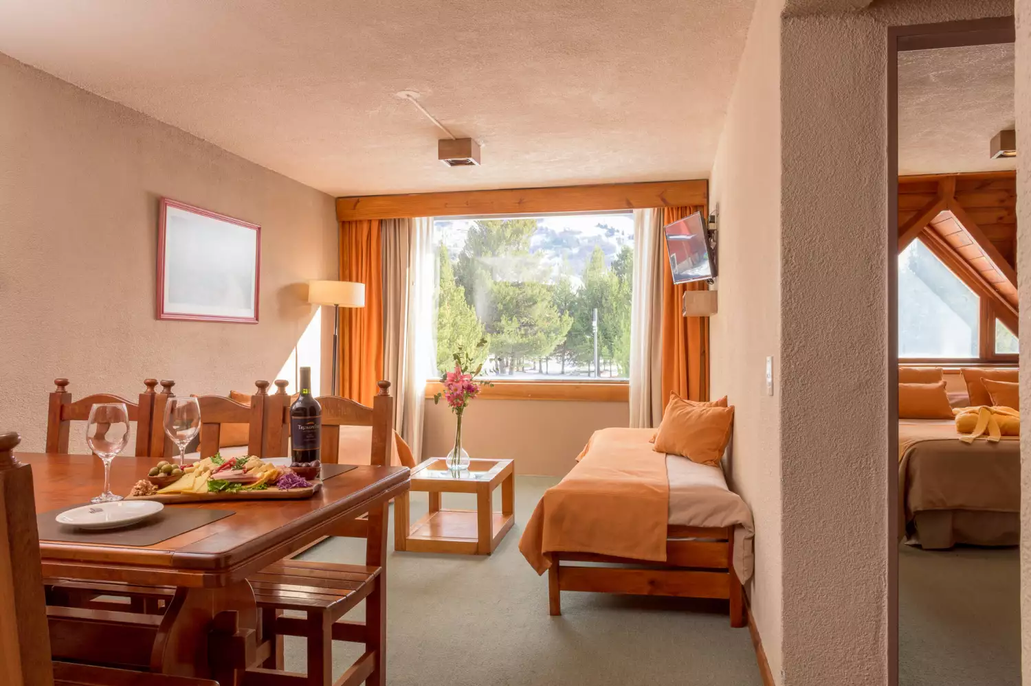Living room with 2 armchairs bed + living room with 1 bedTV